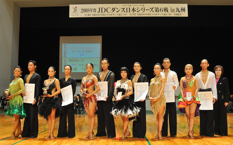 プロ ラテンアメリカン B級 入賞者 左より 1位 2位 3位 4位 5位 6位 1位 8 梅田健二郎 杉田理紗 京都 2位28 平坂弘樹 新谷 真梨 京都 3位67 杉澤 賢 和泉元 美典 京都 4位85 前田将寛 松井 紗央里 大阪 5位40 伊藤大輔 伴 まゆみ 大阪 6位43 石橋優一 桑野 沙弥香 福岡 成績全出場者一覧表 |
